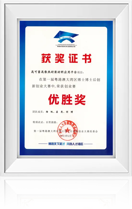 • 第一届粤港澳大湾区博士博士后创新创业获奖证书(优胜奖)